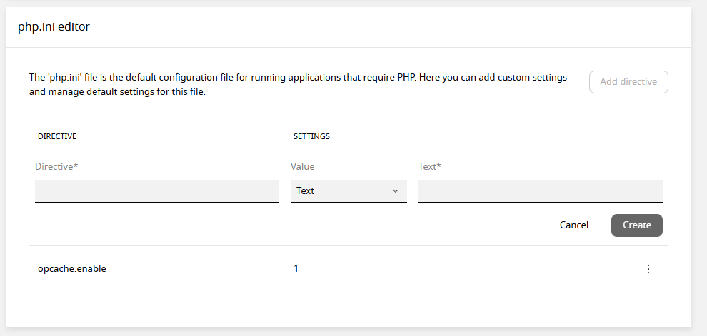 Example: To enable OPcache, set the directive to